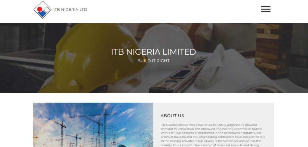 ITB Nigeria Limited specializes in design‑build construction solutions for commercial projects, particularly high‑rise towers and industrial facilities. The company is recognized for its focus on innovation and modern technology in construction delivery.